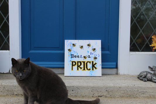 "Bee A Prick" -30.48cm(L)x30.48cm(H) Unframed Wall Hanging Irreverent and Quirky Hand Sewed on Canvas