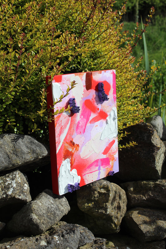 "Celebration" -21.59cm(L)x30.48cm(H) Unframed Wall Hanging Mixed Media with Vibrant Red