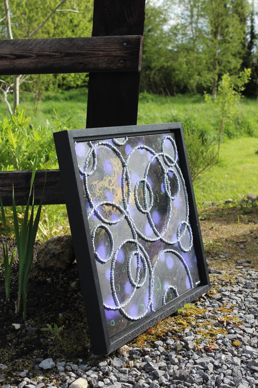 "Spectra" -66.5cm(L)x56.0cm(H) Framed Wall Hanging with Acrylic Pour, Spray paint and Quilling. Galaxy Inspo