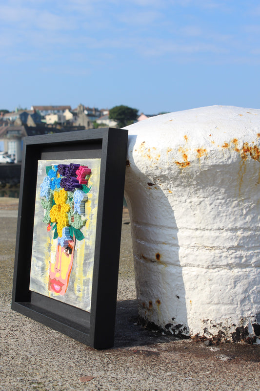 ''American Graffiti''- 30.48cm(L) x 40.64cm(H) Unframed Mixed Media with Plaster and Quilling Wall Hanging Décor